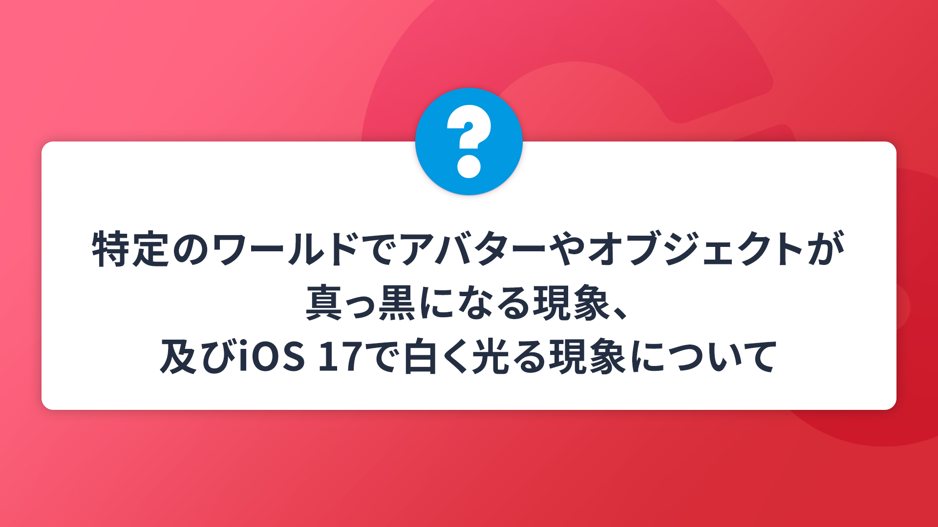 特定のワールドにて、アバターやオブジェクトが真っ黒になったり、iOS17では中心が黒くそのまわりが白く光る現象のご報告を頂いております。